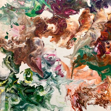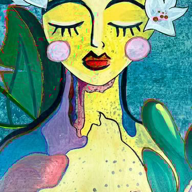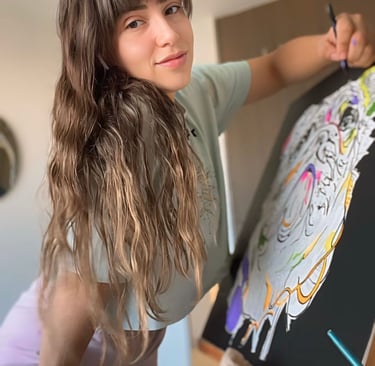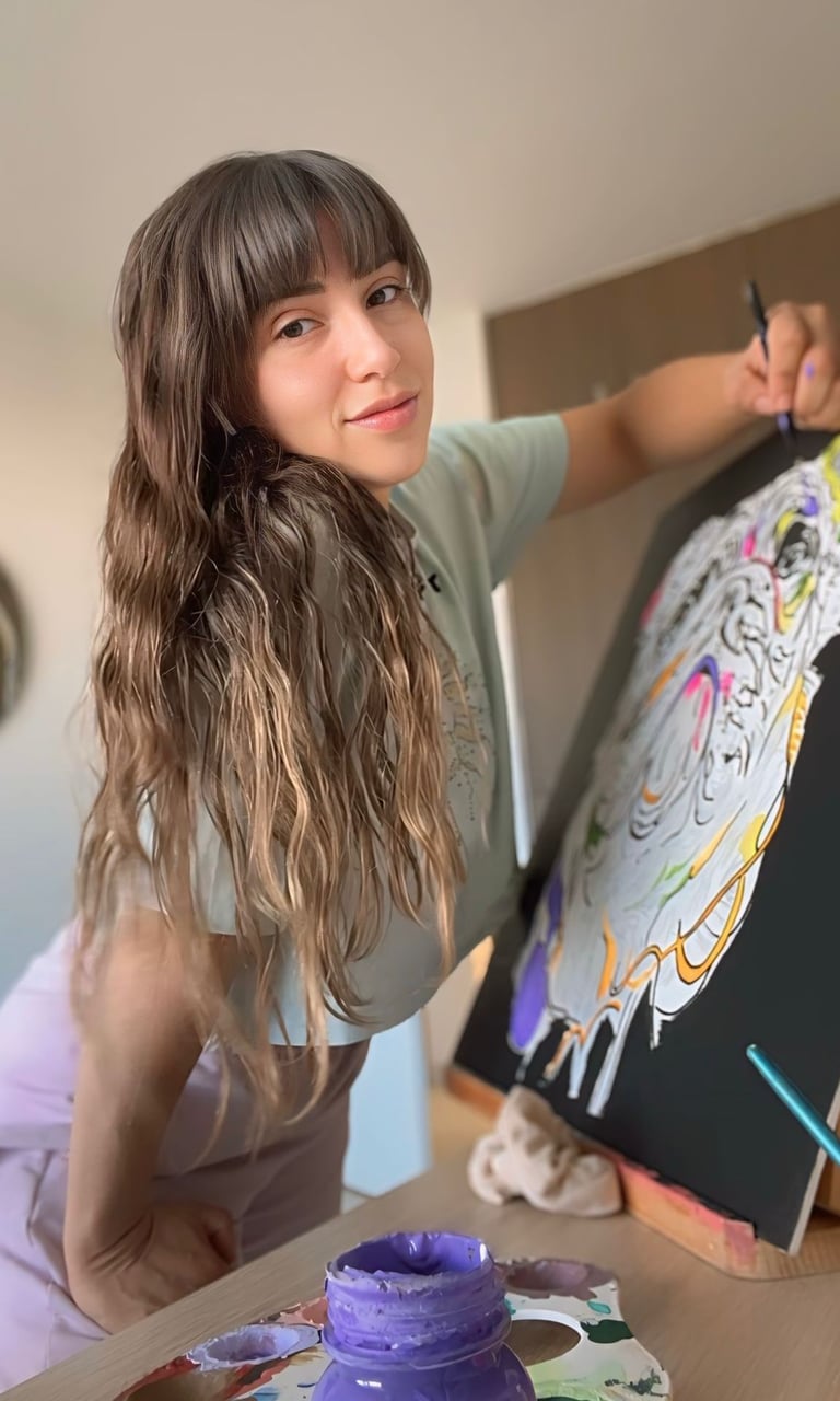 Mi proceso creativo consiste en retarme a mí misma a experimentar nuevas sensaciones y colores en mi mente, que me llevan a un estado de concentración y disciplina que solo encuentro en la pintura